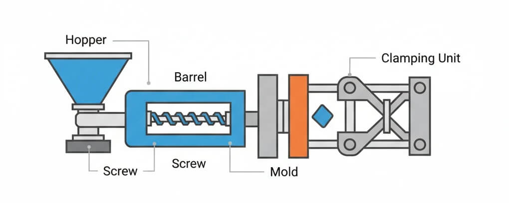 اجزای کلیدی دستگاه تزریق (واحد تزریق، واحد گیره، کنترلر)